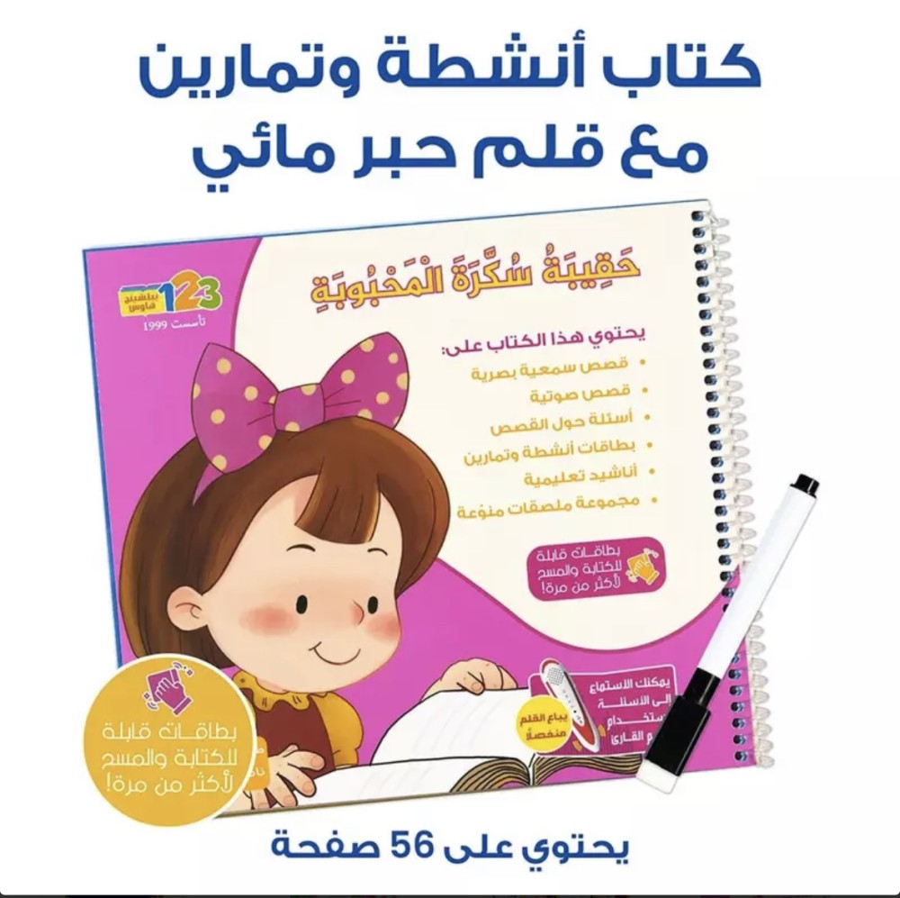 كتاب أنشطة وتمارين (صفحاته مخرّمة وقابلة للنزع وللكتابة والمسح لأكثر من مرة) يحتوي على: